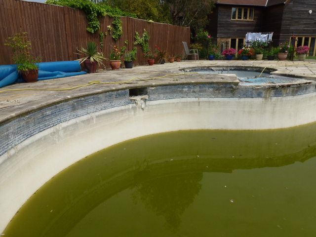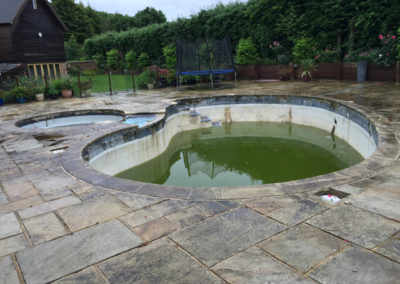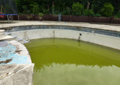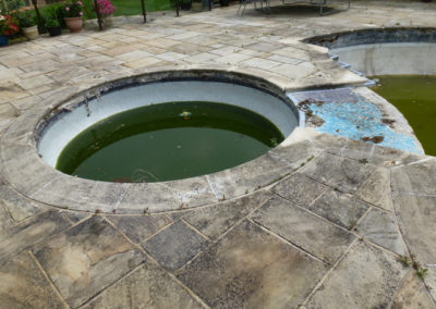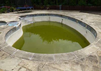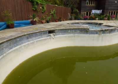 This pool had laid unused for a couple of years and just prior to that it had supposedly been refurbished by another pool company! After the previous refurb, the pool soon fell into a poor state of repair and the owners pretty much gave up on it and contemplated filling it in. They called us as a last resort to see if we thought we could revive it at reasonable cost.